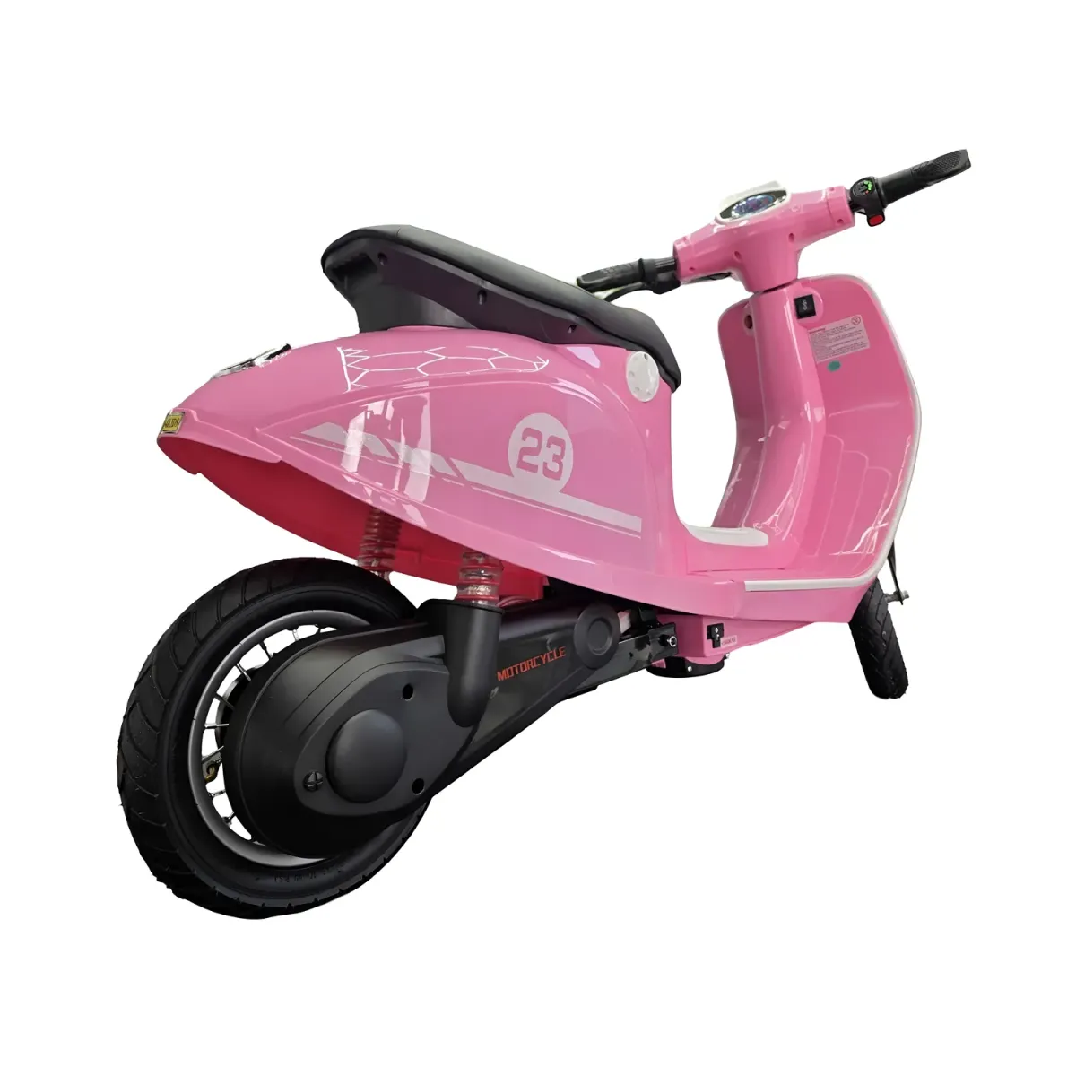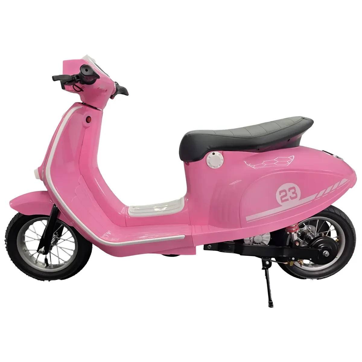 Der Gashebel sorgt für zusätzlichen Spaß und ein realistisches Fahrgefühl – Kinder erleben das Fahrgefühl eines echten Rollers. Der Ledersitz bietet Komfort bei längeren Fahrten und das auffällige rosa Design macht den Roller einzigartig und stilvoll.