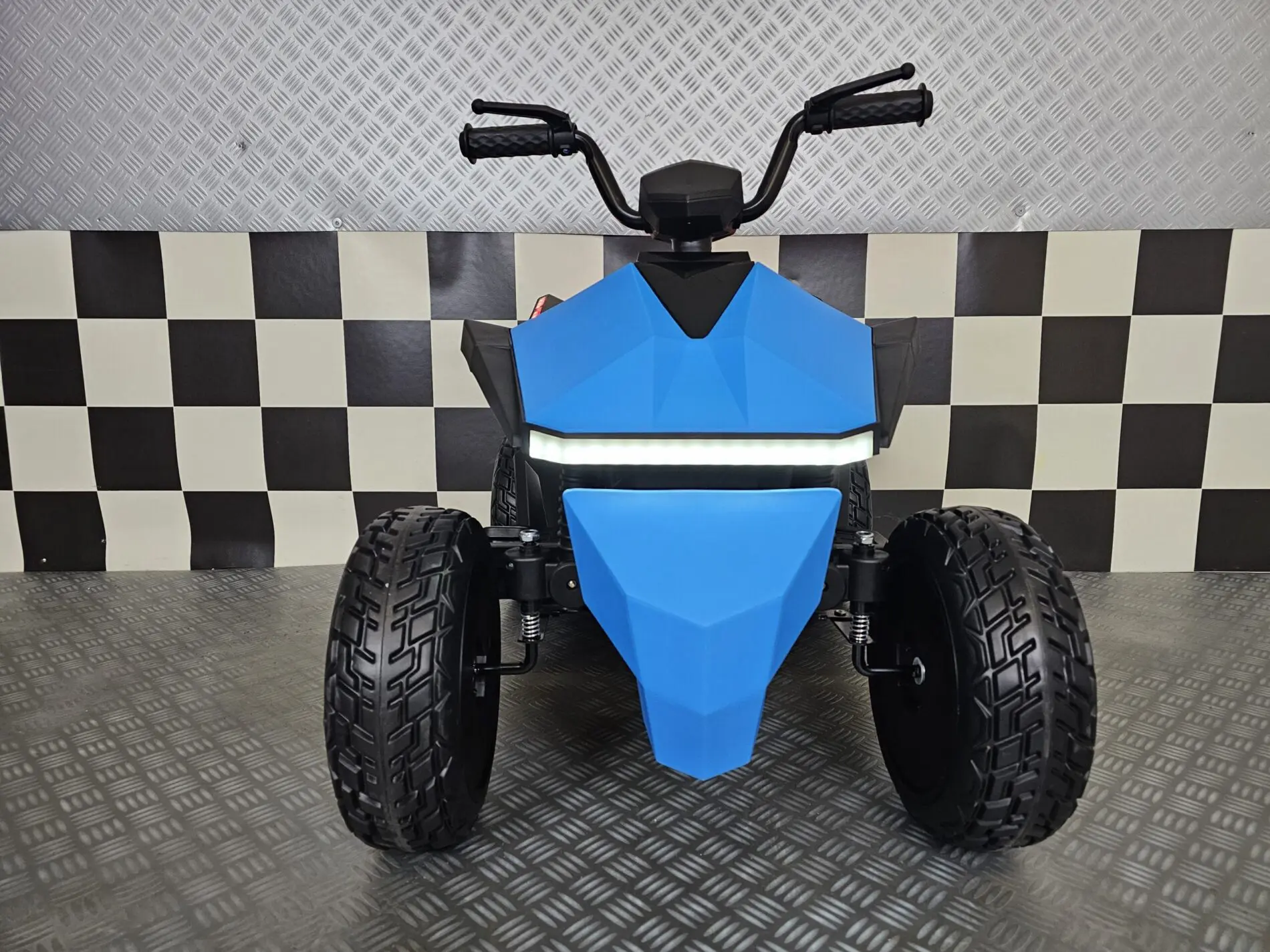 Mit diesem Kinder-Quad Future 12 Volt macht das Fahren Spaß. Das Kinder-Quad hat Gummireifen, einen Ledersitz und sogar Lichter! Das Kinder-Quad ist mit einem Display mit verschiedenen Funktionen ausgestattet, wie zum Beispiel: Bluetooth, Musik, USB/mp3-Anschluss und eine Batterieanzeige. Außerdem kann man auf dem Display 2 Geschwindigkeiten einstellen, indem man eine Hasen- oder Schildkrötentaste drückt. Was dieses Quad Future abrundet, ist sein cooles Aussehen!