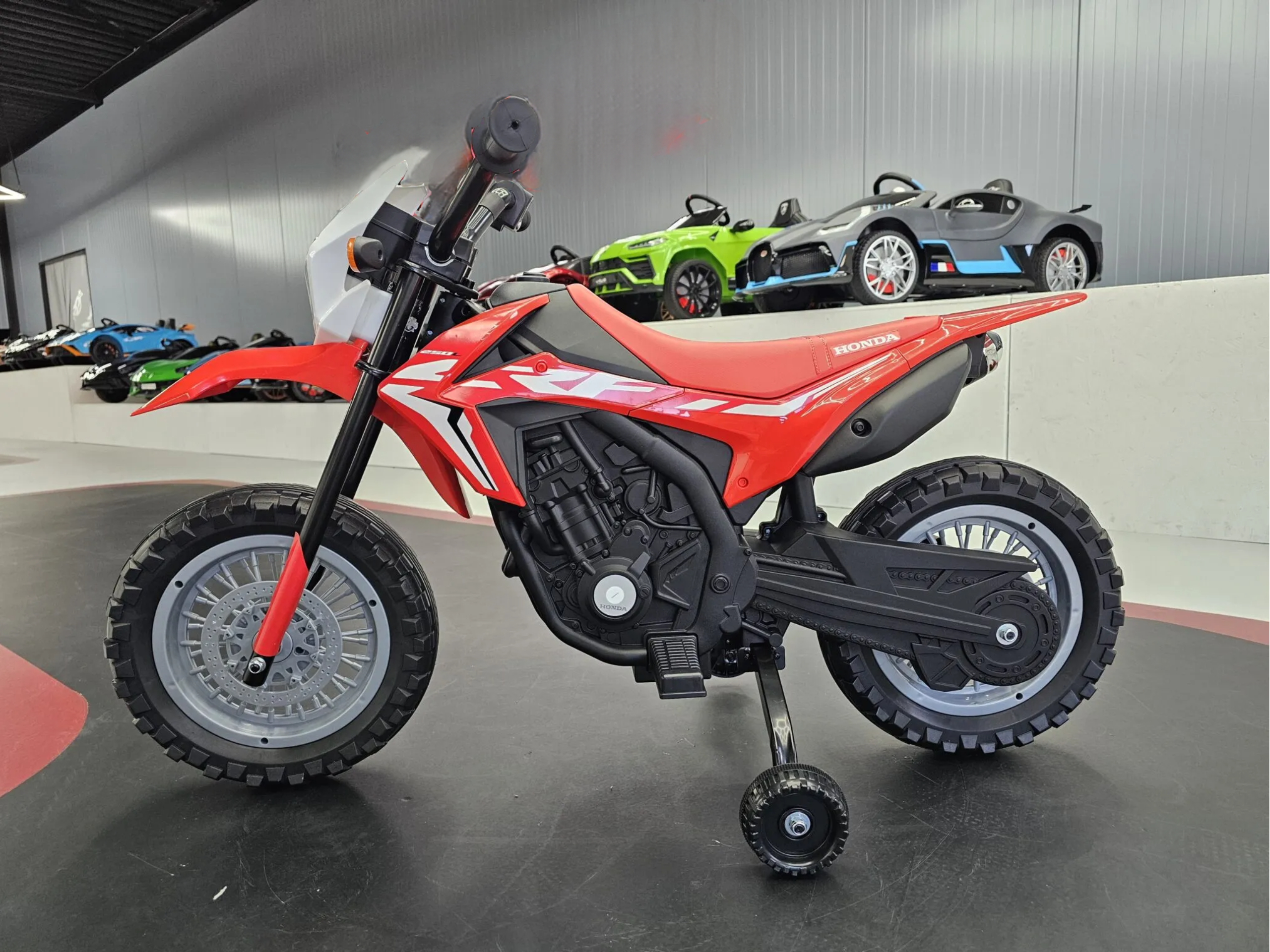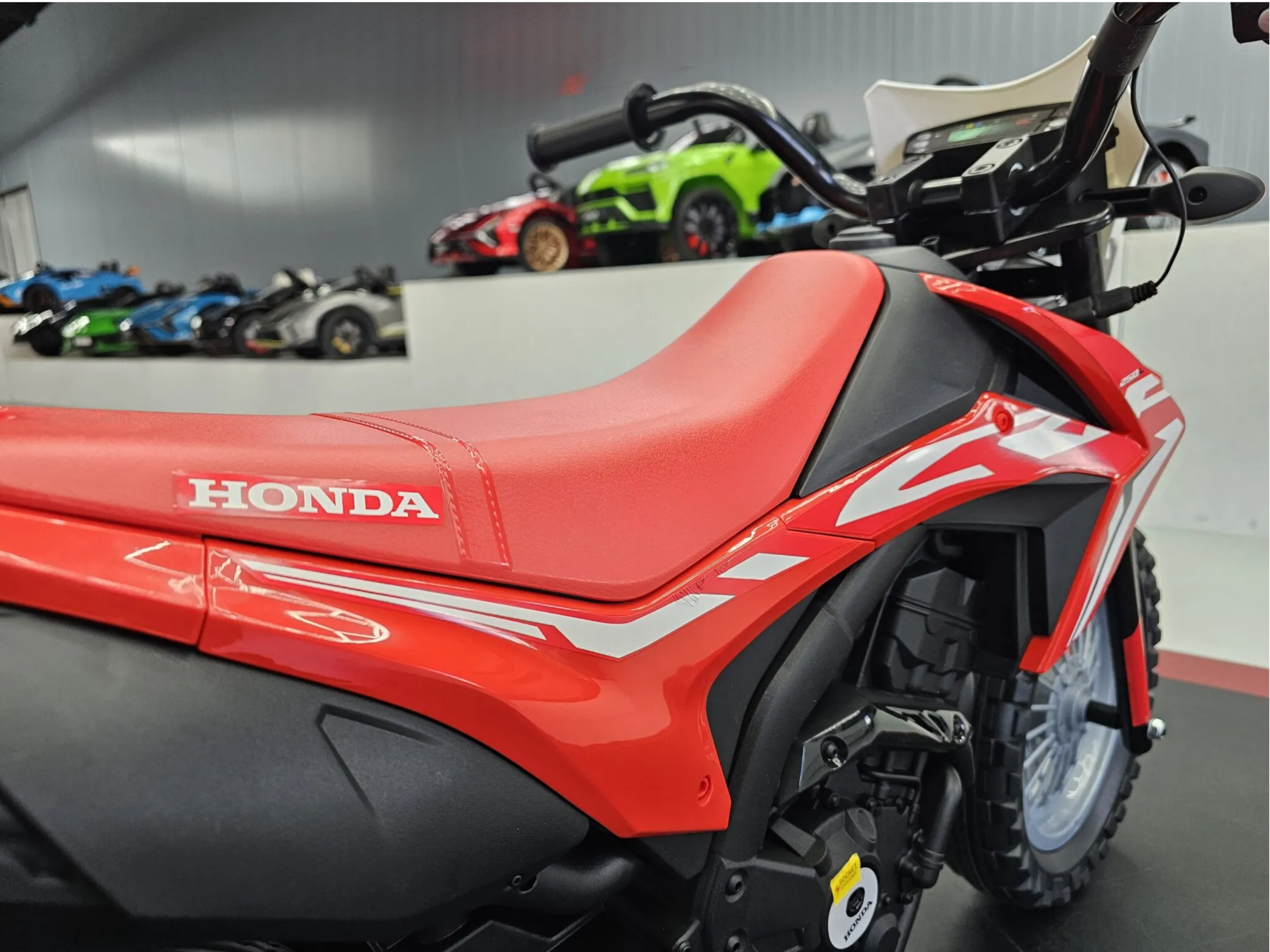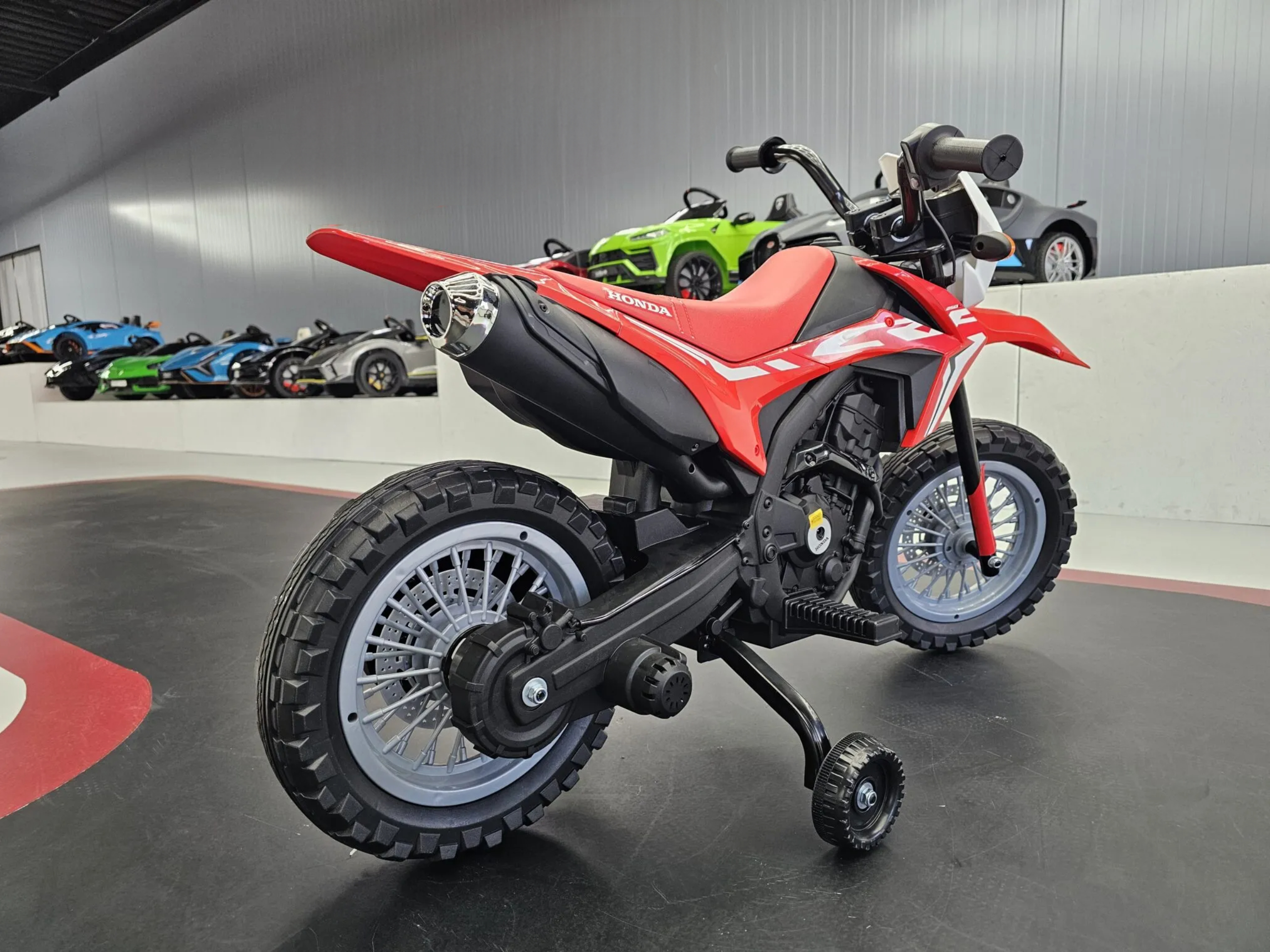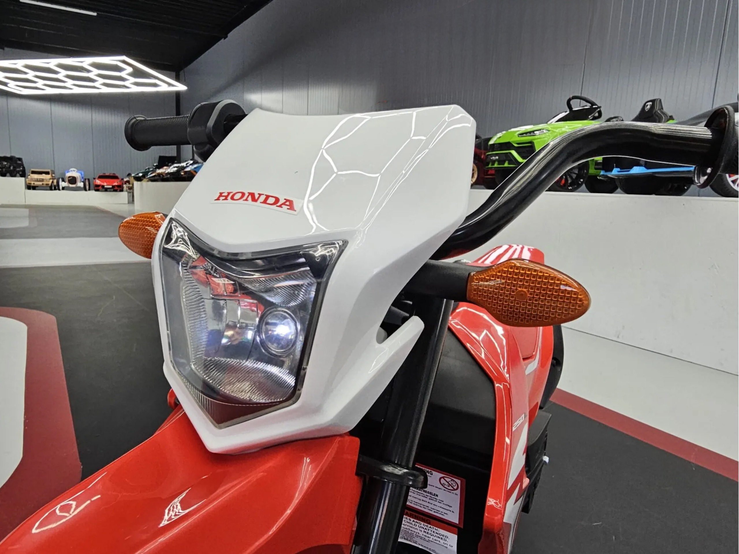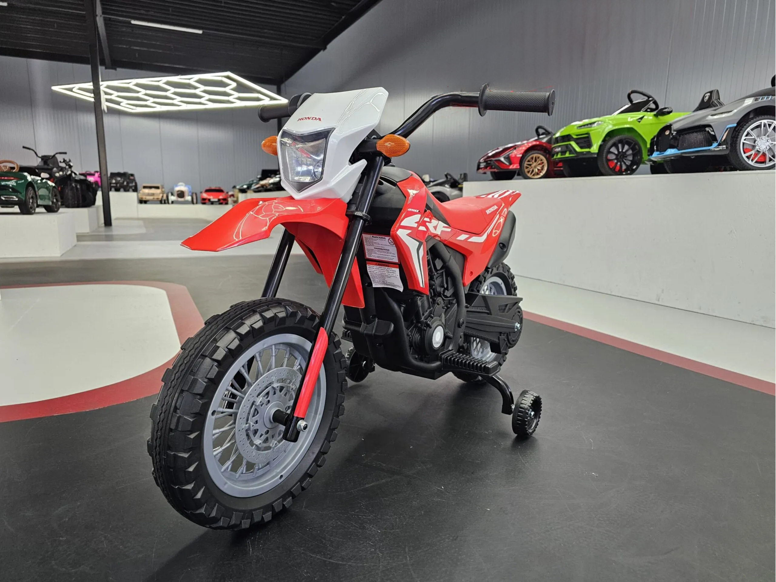 Suchen Sie ein cooles und komfortables Elektro-Kindermotorrad? Das Honda CRF Elektro-Kindermotorrad mit hellen LED-Leuchten und abnehmbaren Stützrädern ist ideal für junge Fahrer, die ihre ersten Schritte auf einem echten Mini-Dirtbike machen möchten! Ein Knopf am Lenker treibt das Bike an.